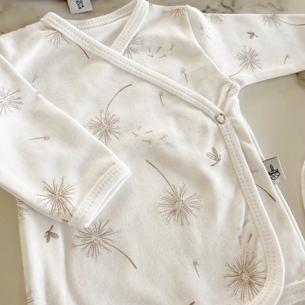 Incluye una batita, ranita y gorrito en talle único. Fabricado en 100% algodón PIMA de excelente calidad, este conjunto es suave y cómodo, ideal para la piel delicada de los bebés.