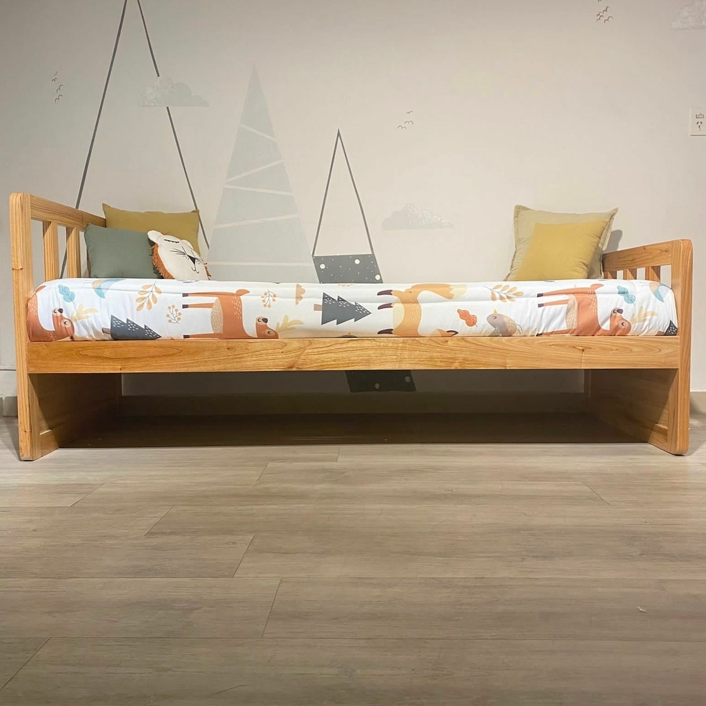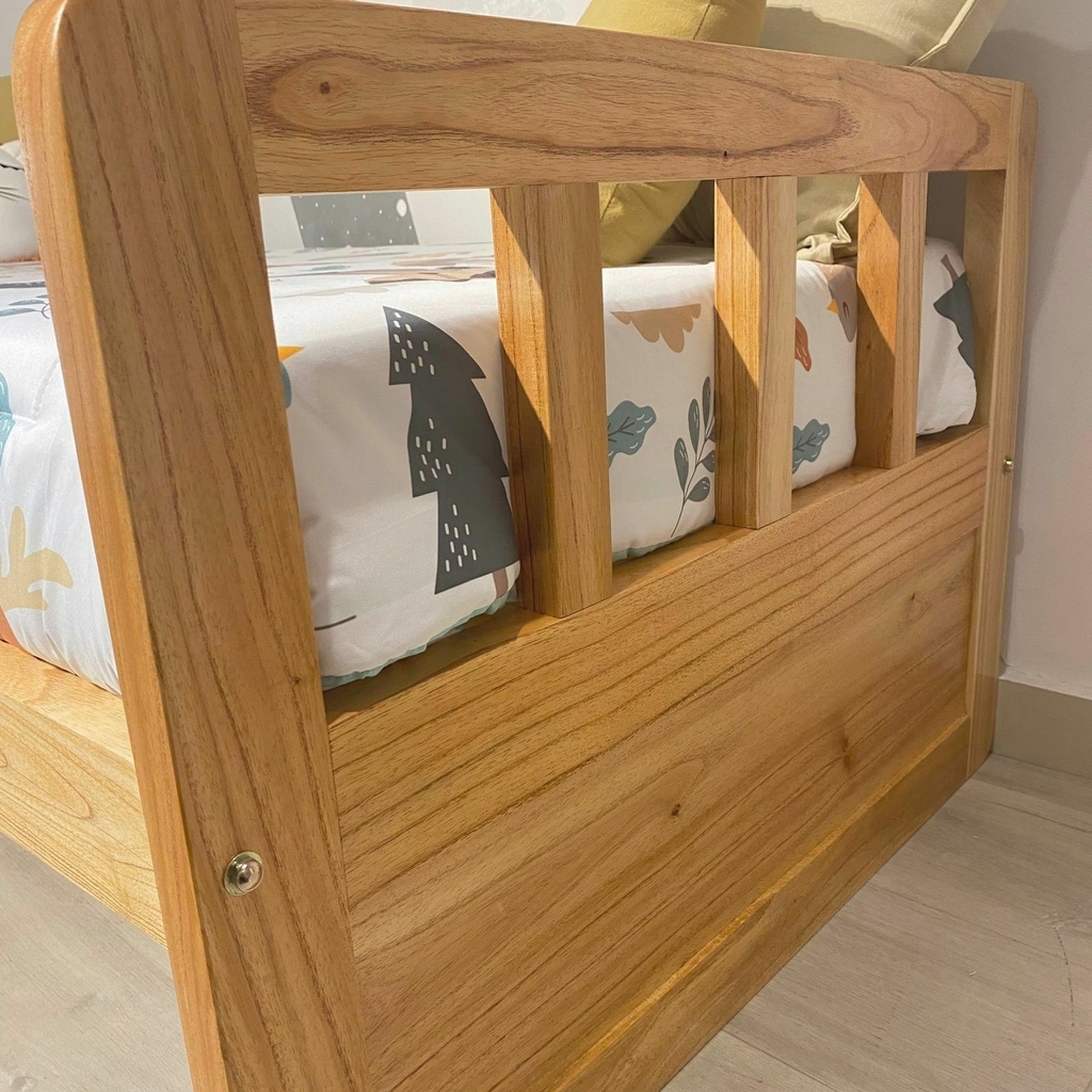 La cama individual Vito es una opción ideal para quienes buscan un mueble duradero y funcional. Fabricada en madera maciza Paraíso, esta cama combina robustez y elegancia. Recomendada para los peques a partir de los 3 años