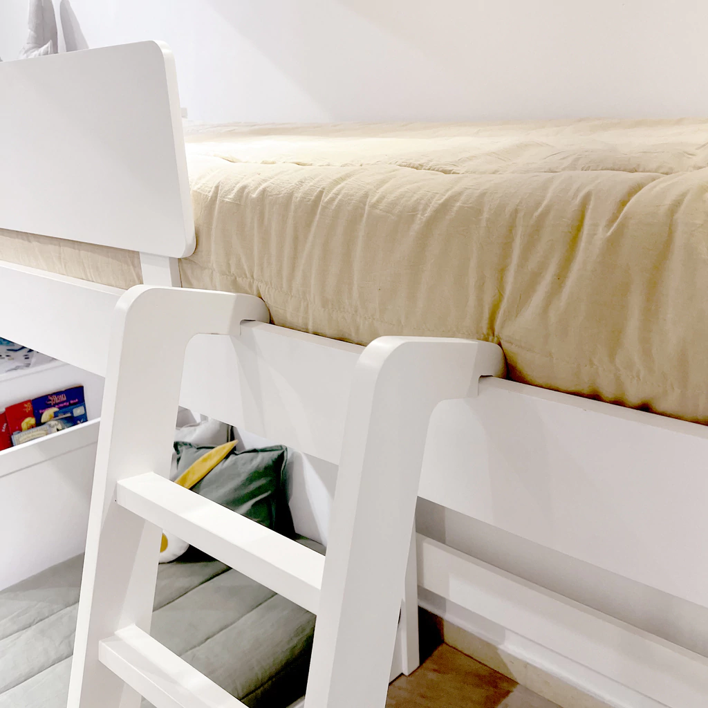 La Cama Rinconera Chipi es una opción ideal para quienes buscan maximizar el espacio, especialmente en habitaciones pequeñas o compartidas. Fabricada en MDF laqueado atóxico, garantizando durabilidad.