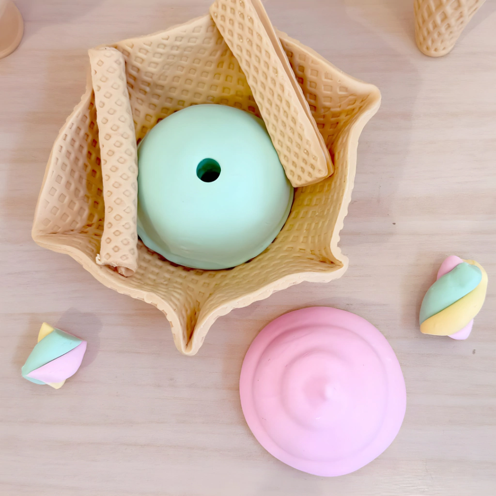 Presentamos combo de dos cucuruchos con gustos intercambiables de helado, ideal para que los peques se diviertan a lo grande y disfruten de horas de juego creativo. Está hecho de porcelana fría, un material liviano y super resistente que soporta caídas sin problemas. Cada pieza cuenta con detalles que despiertan la imaginación. Los peques pueden inventar sus propias historias, aprender sobre cocina de forma divertida y a compartir. Además, es perfecto para jugar en grupo y disfrutar momentos en familia o con amigos.
