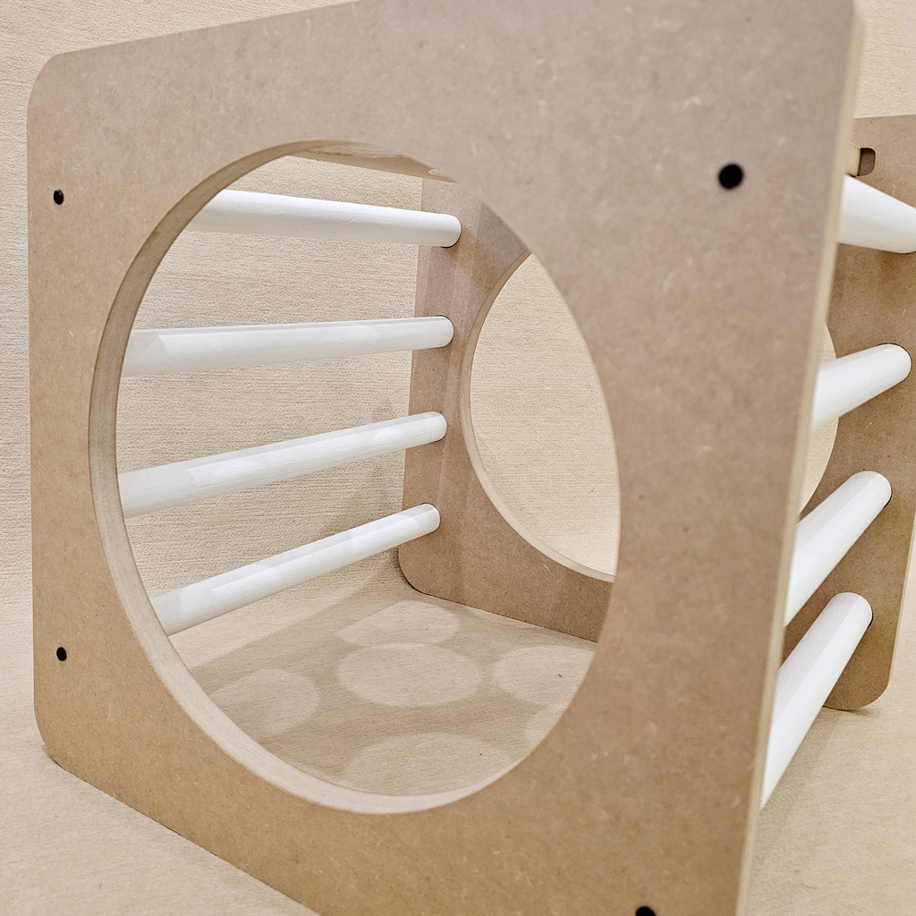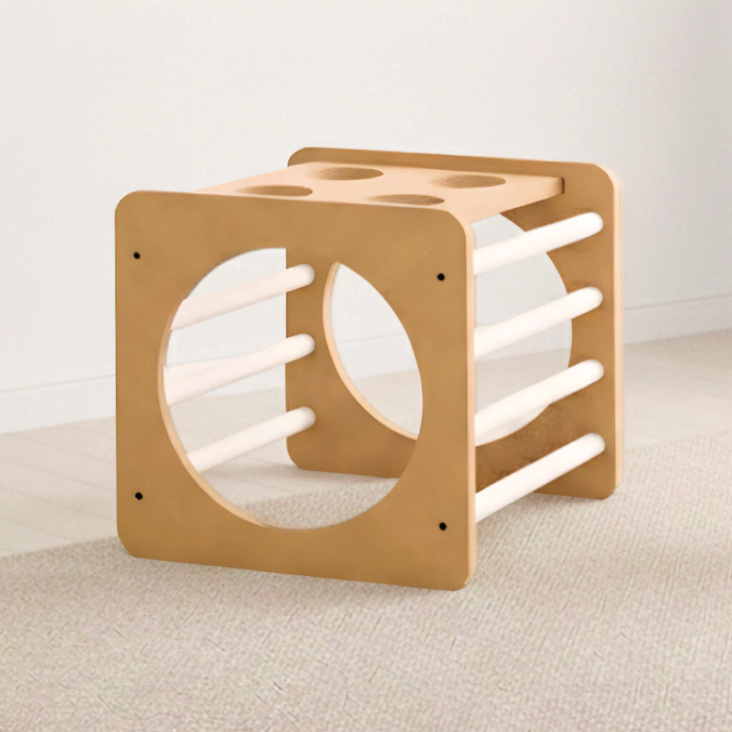 El Cubo Pikler es un juguete educativo y entretenido, diseñado para ayudar a los niños a desarrollar su coordinación y habilidades motoras finas. Fomenta la creatividad y la imaginación, al tiempo que invita a la exploración y al aprendizaje activo. Fabricado en MDF pintado y barnizado, y con palos de pino de 28 mm. Ideal para estimular el juego libre y el movimiento. Desde los 10/12 meses en adelante