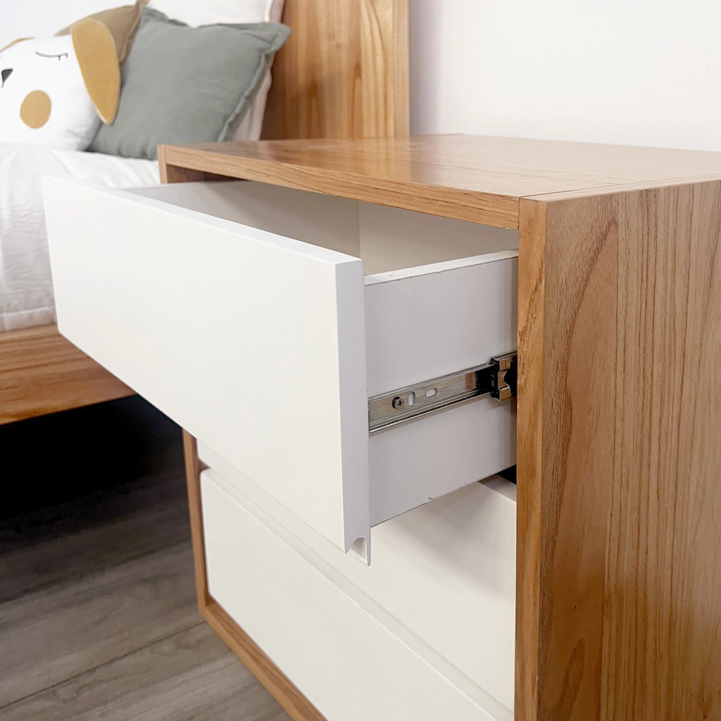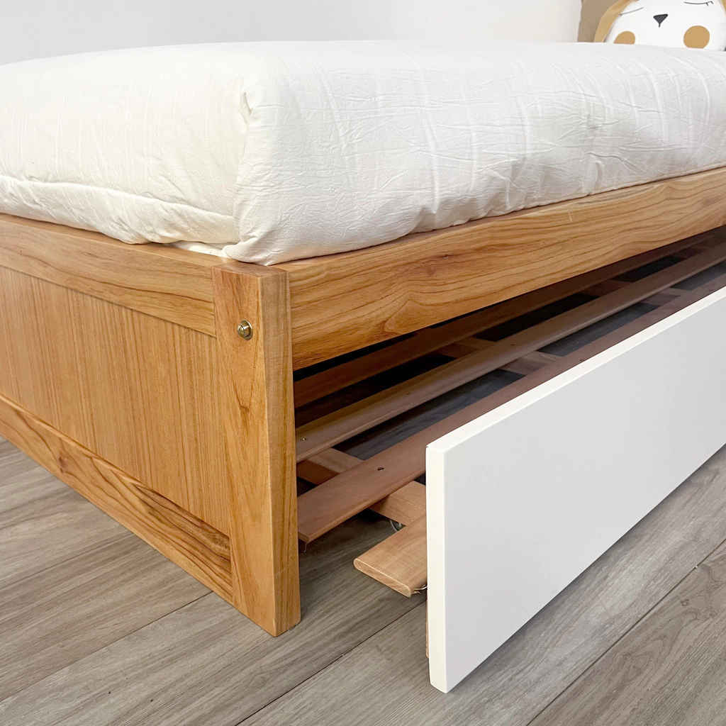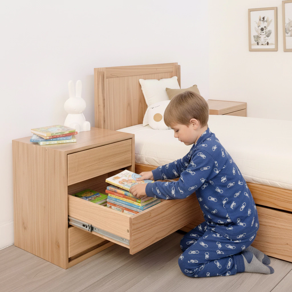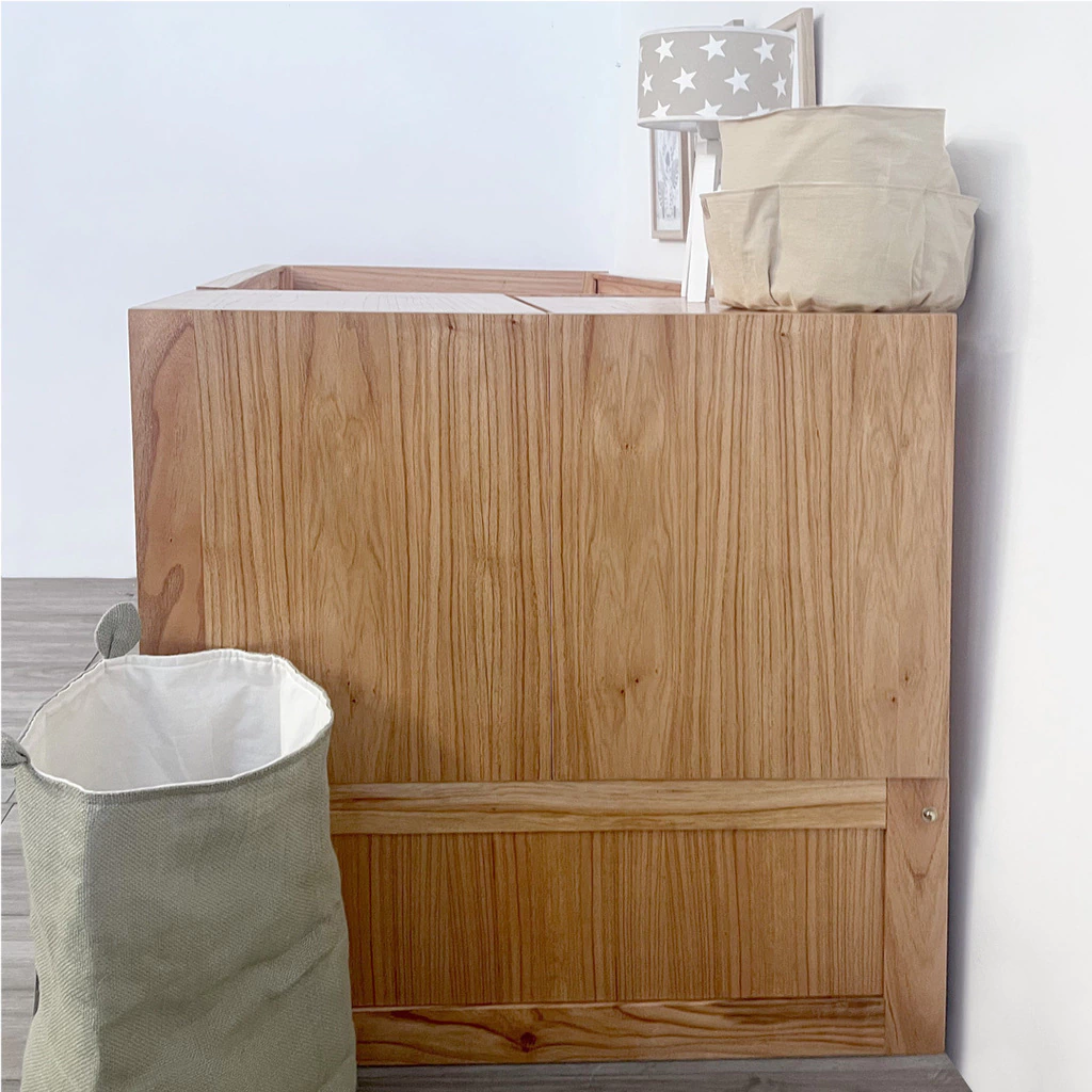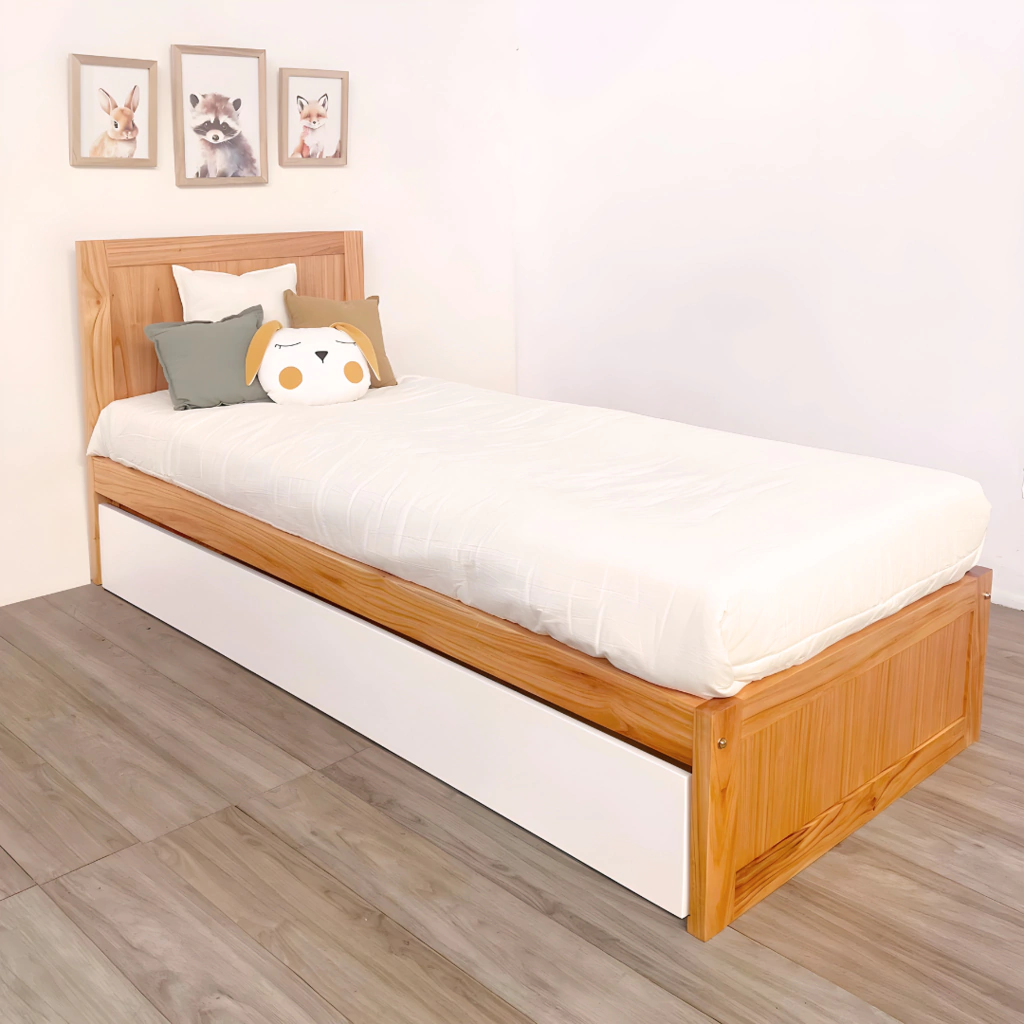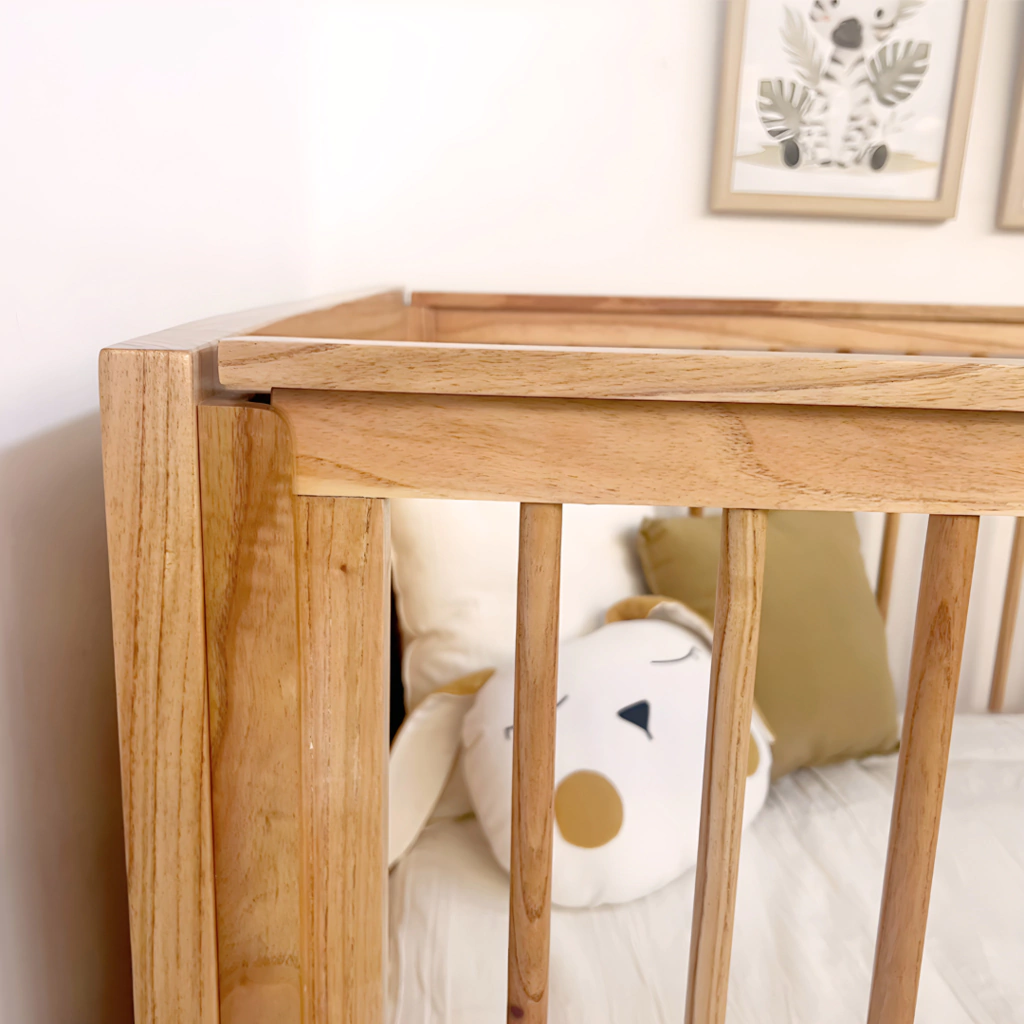 Las cunas funcionales están diseñadas para acompañar todo el crecimiento del bebé. Estas cunas se transforman fácilmente en una cama de una plaza, acompañadas de una mesa de luz (con 3 cajones) y un baúl juguetero. Las barandas tienen una altura de 60 cm y cuentan con un sistema deslizable hacia arriba. Los cajones están equipados con guías telescópicas, y un uñero como sistema de apertura. Fabricada en madera Paraíso, brindando firmeza y seguridad. Los frentes de cajones y frente de carrito blanco están hechos de Mdf laqueado atóxico en blanco. Cuenta con una laca de protección poliuretanica, asegurando durabilidad y un acabado impecable. La cama carrito es fija y permite incorporar una persona más. Soporta hasta 110 kg.