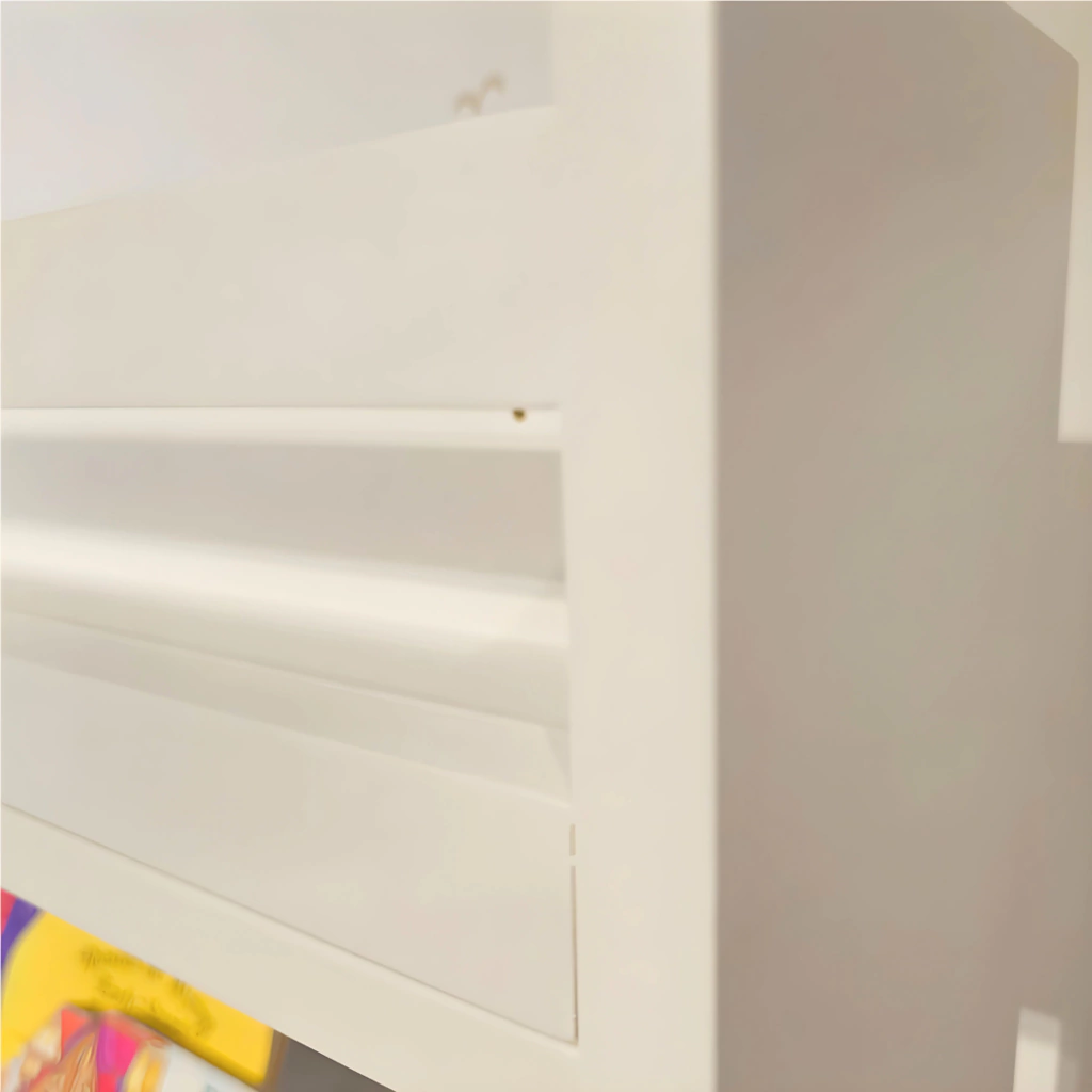 El librero Vito es una opción moderna y funcional que maximiza el espacio. Es ideal para que los chicos elijan por su cuenta sus libros favoritos. Diseñado para ser amurado a la pared y fabricado en Mdf de alta calidad con un acabado laqueado atóxico.